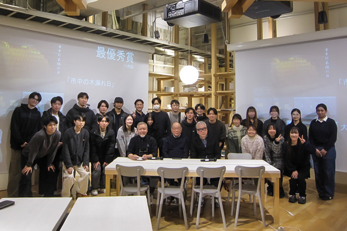 17作品の応募があり2月4日に33号館1階デザインコモンズにて表彰式を行い、役員数名が出席し最優秀賞など受賞者に細川副会長が表彰を行いました。
